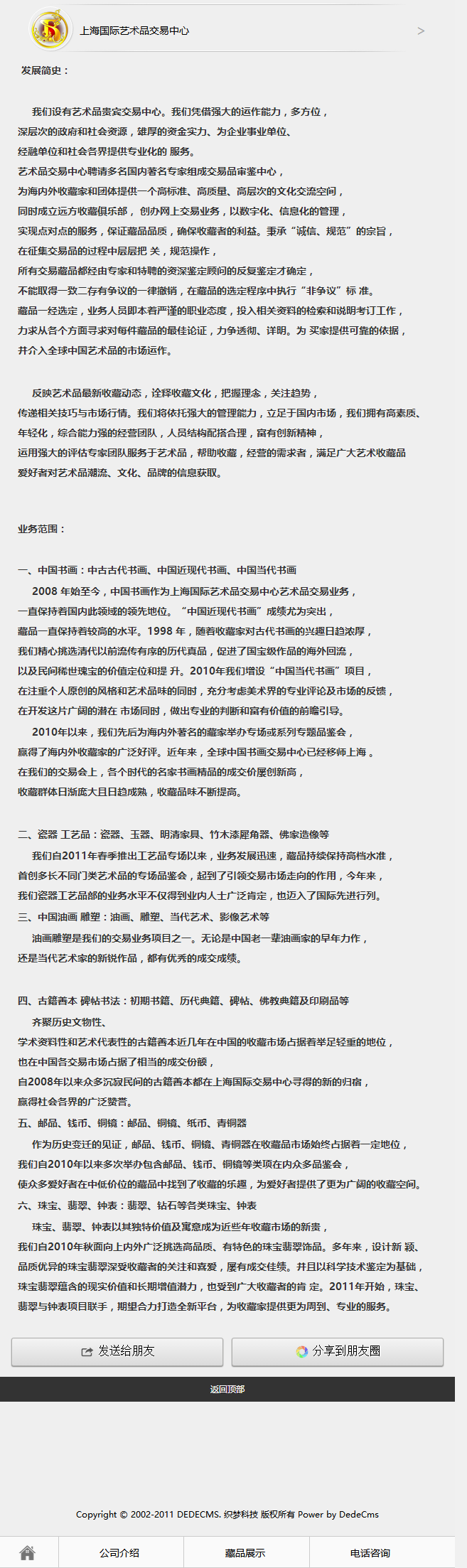模板名称:古玩瓷器艺术品交易中心手机模板